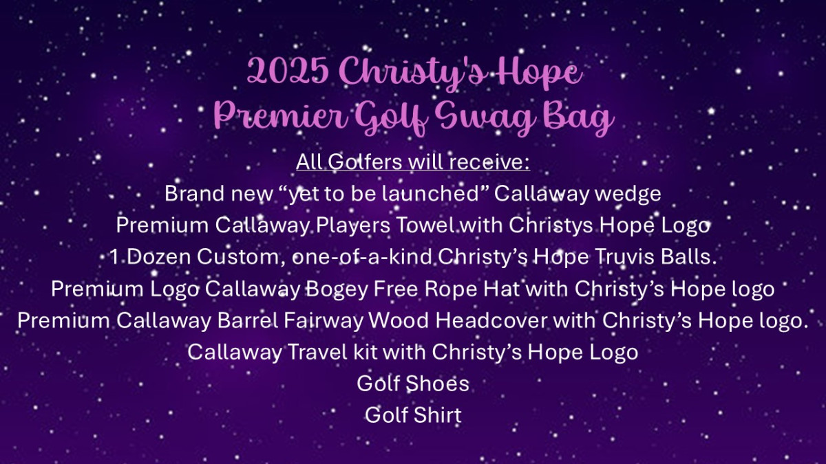 100% of the net proceeds raised at the annual Christy’s Hope Gala & Golf Event are donated to the Battered Women and Children’s Shelter. By purchasing a Sponsorship, you are a part of this support and legacy of Hope.